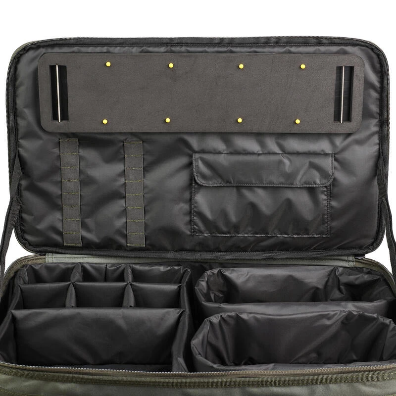 *Le ALL IN ONE L offre un volume conséquent (52 x 30 x 17cm) sous un format valise pour le carpiste dont l’objectif est de centraliser tous ses accessoires à portée de main.